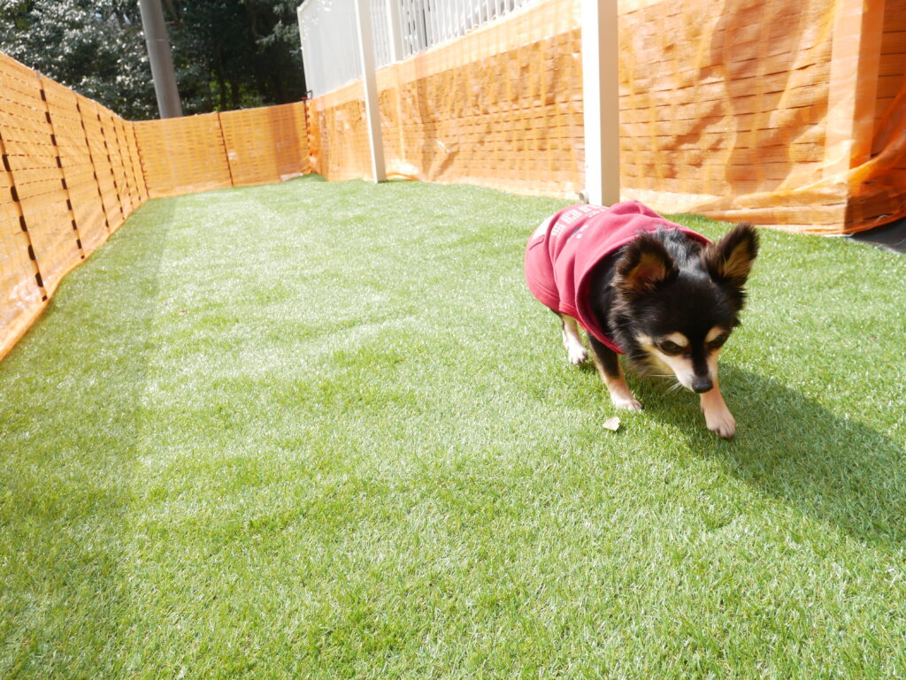 ミニドッグランができました!ベランダから降りることができる宿泊者様専用の完全ブライベートドッグランです。小型〜中型犬向きのドッグランです。