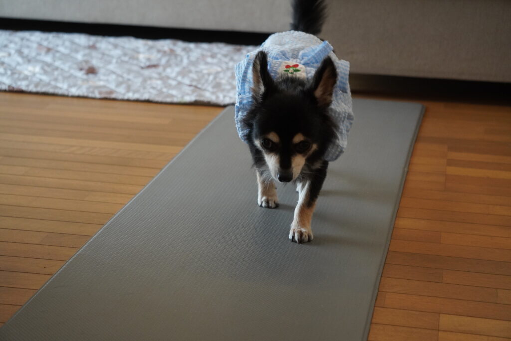 マットを置いています。わんちゃんがフローリングで足が滑らないように、室内のお好きな場所に広げてお使いください。